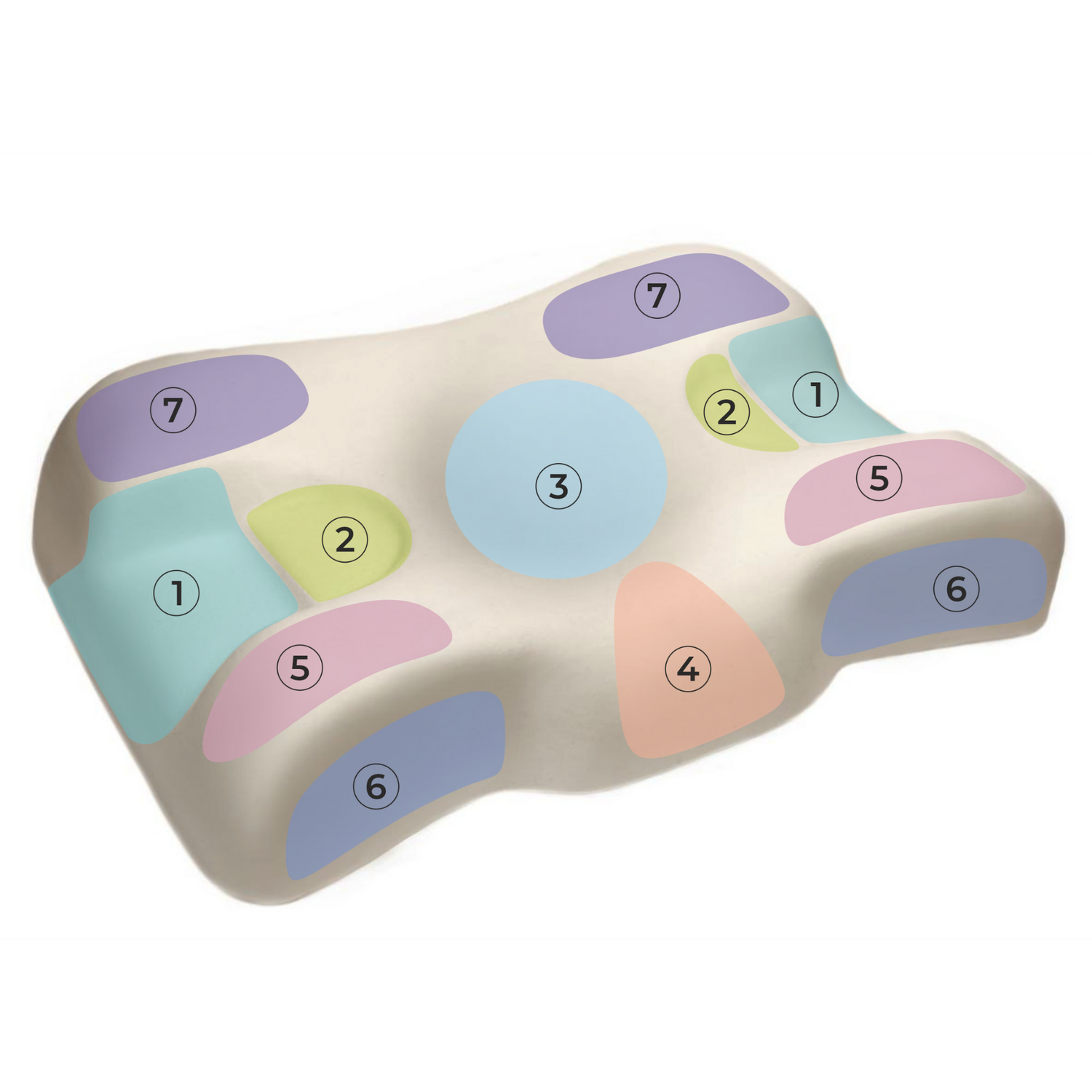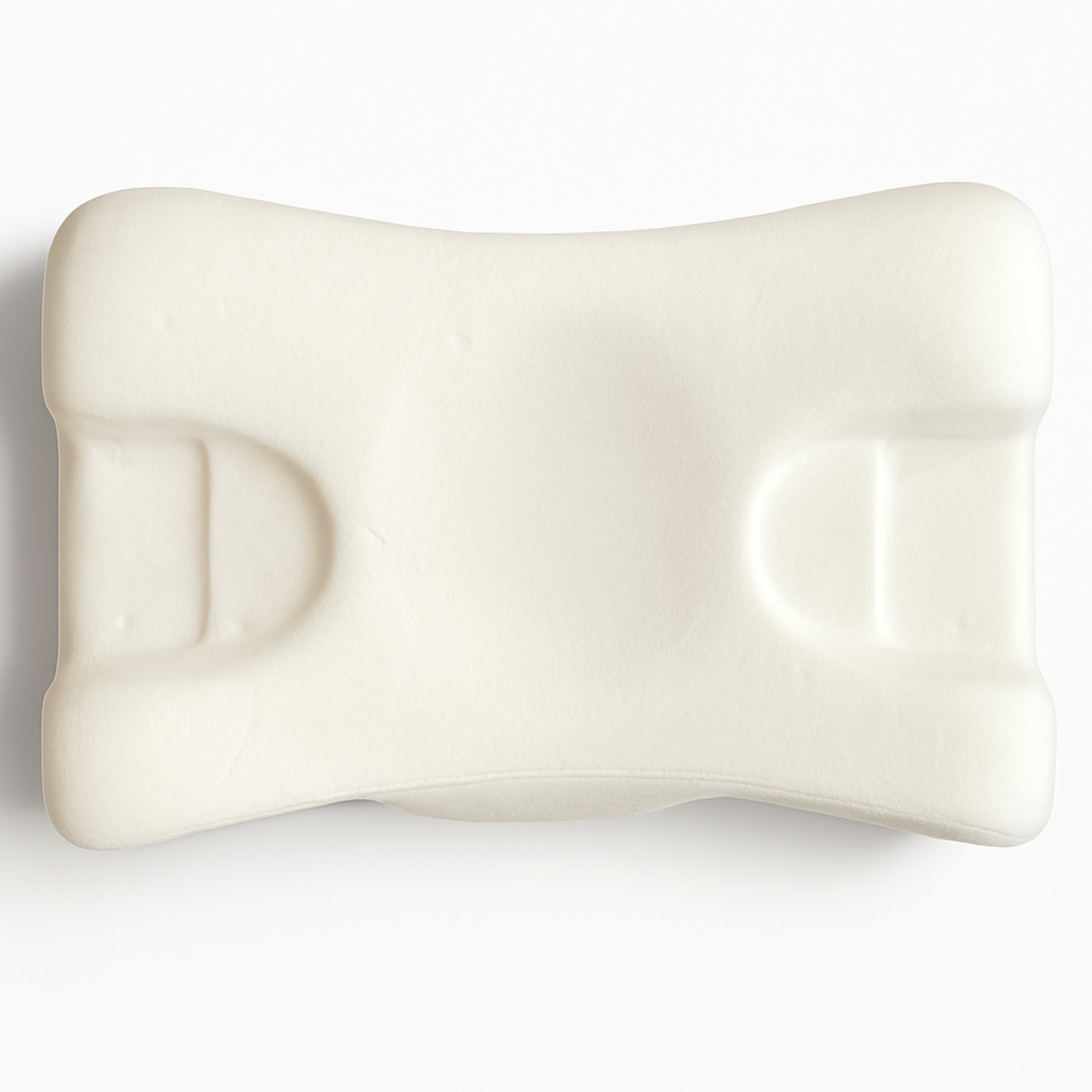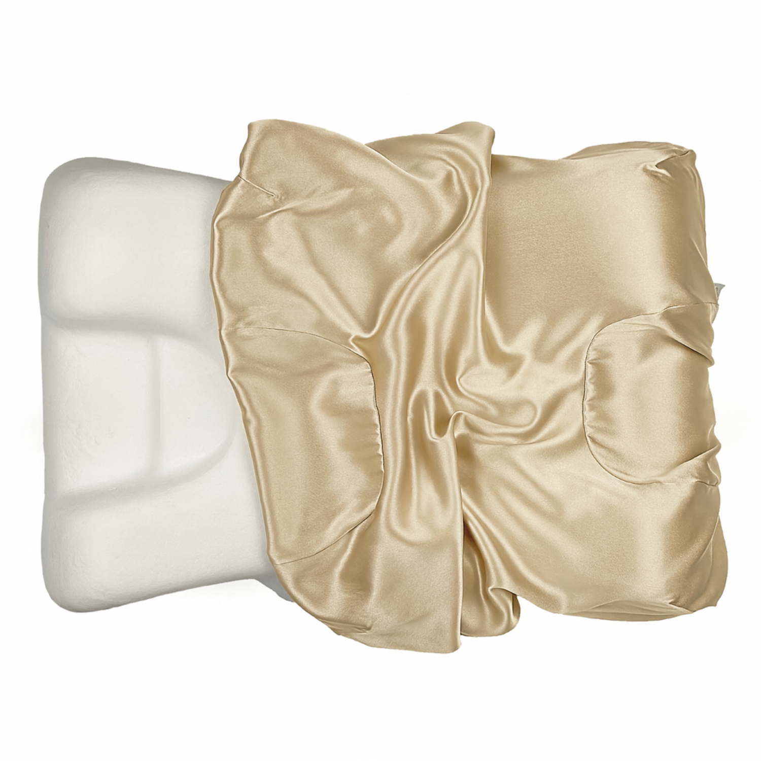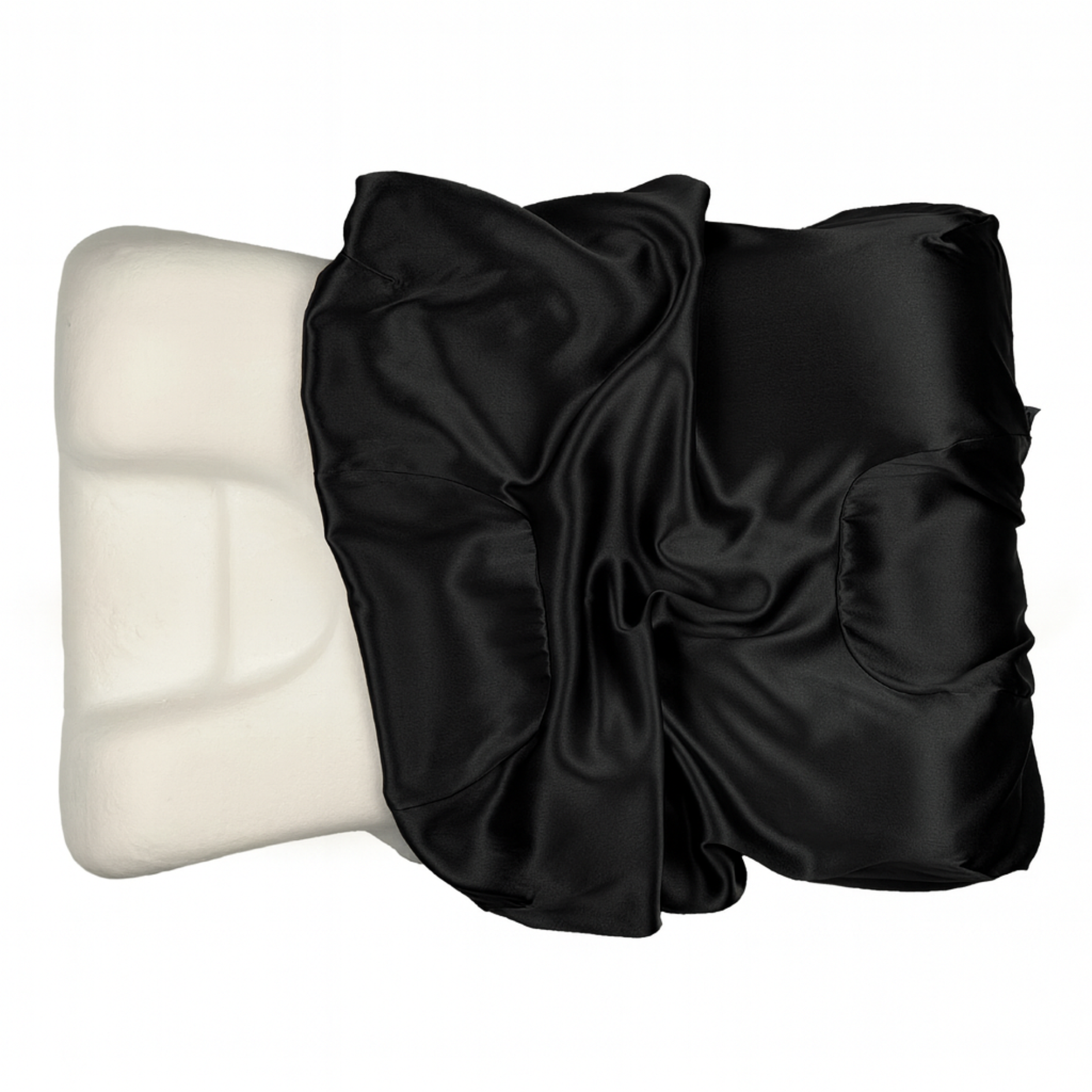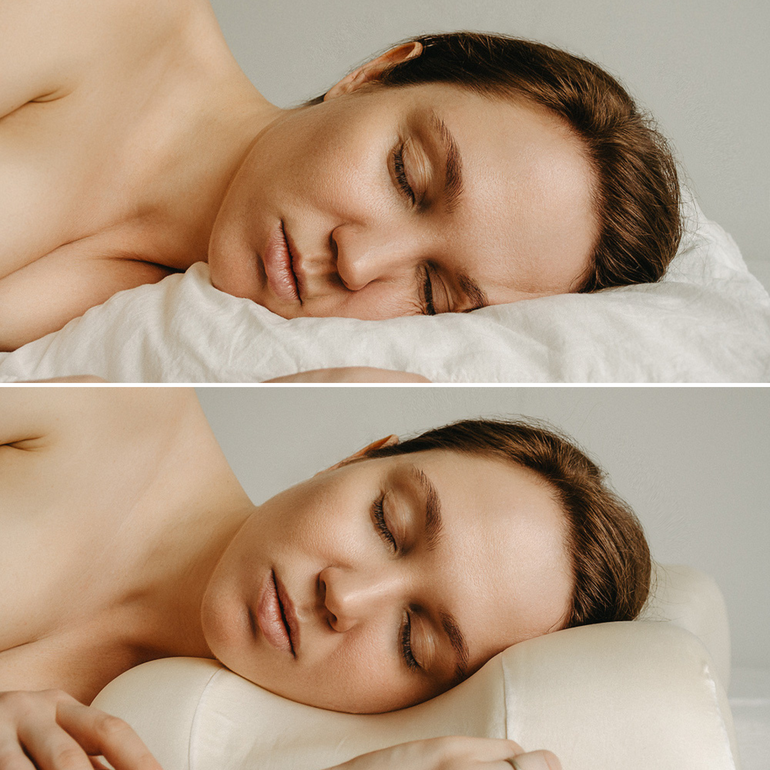 Jeho ergonomický tvar podporuje přirozenou polohu hlavy a krku a zároveň minimalizuje tlak na citlivé oblasti obličeje. Díky tomu účinně předchází vzniku spánkových vrásek, prohlubování mimických vrásek a otlakům od běžného polštáře.
